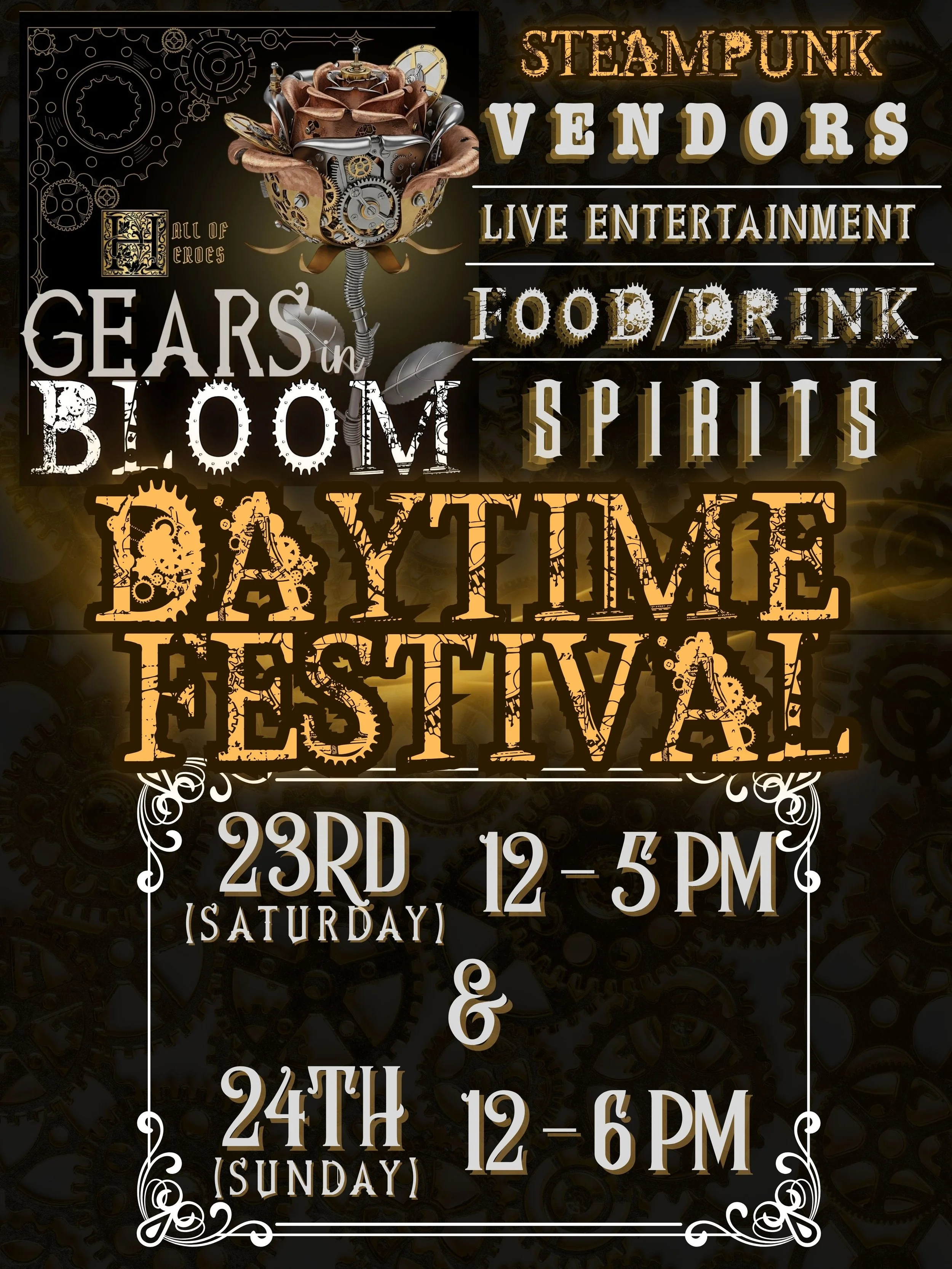 Our Daytime Steampunk Festival brings the gears to life with a relaxed, high-energy atmosphere perfect for all ages. Join us for a free-to-enter celebration featuring a curated selection of vendors, live entertainment throughout the day, and plenty of food and drinks available for purchase from the venue. Stroll, shop, listen, laugh, and soak in the aesthetic — whether you’re dressed to impress or just curious to explore.